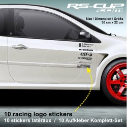 CLIO 3 RS Aufkleber racing pack 10 logo RENAULT SPORT MICHELIN RS-CUP ELF RACING DIRECT Aufkleber RENAULT SPORT