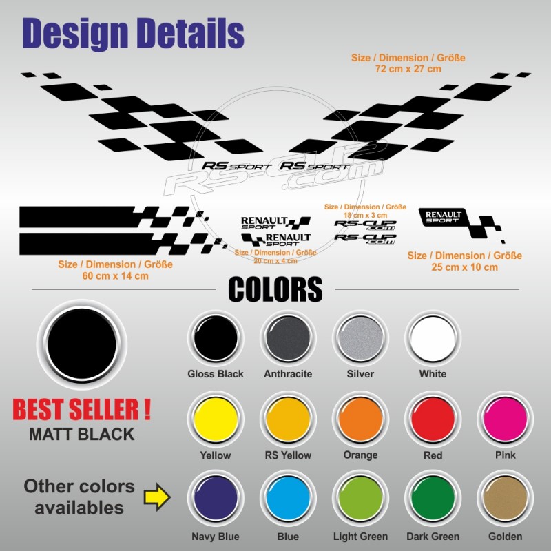 RS-SPORT RENAULT SPORT full kit Seitenstreifen Aufkleber für alle RENAULT