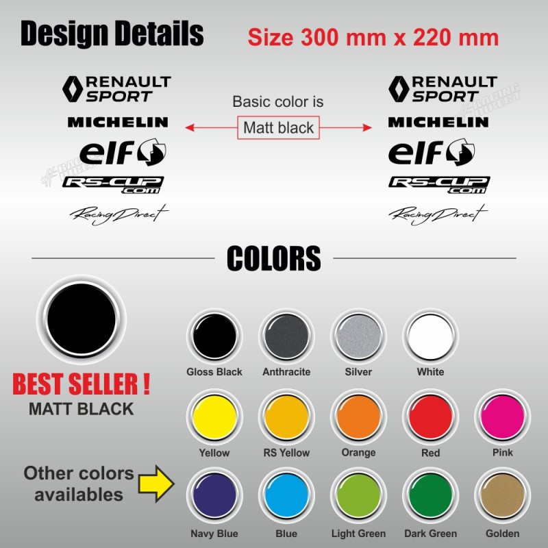 Aufkleber pack 10 logo RENAULT SPORT MICHELIN RS-CUP ELF für Twingo Clio Megane Captur