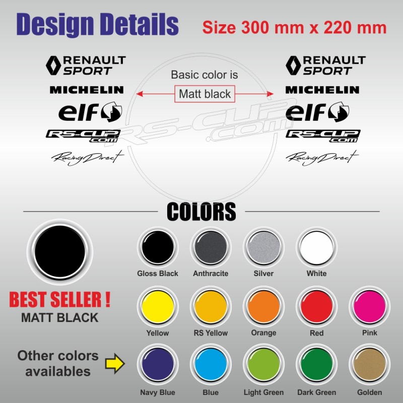 MEGANE 4 RS Sticker pack 10 logo racing pour RENAULT SPORT MICHELIN RS-CUP ELF RACING DIRECT