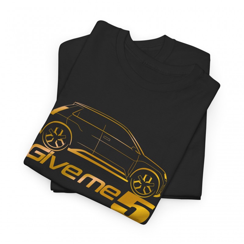 Tshirt Renault 5 E-Tech mixte pour homme femme - Silhouette de 5 E-tech dorée métal