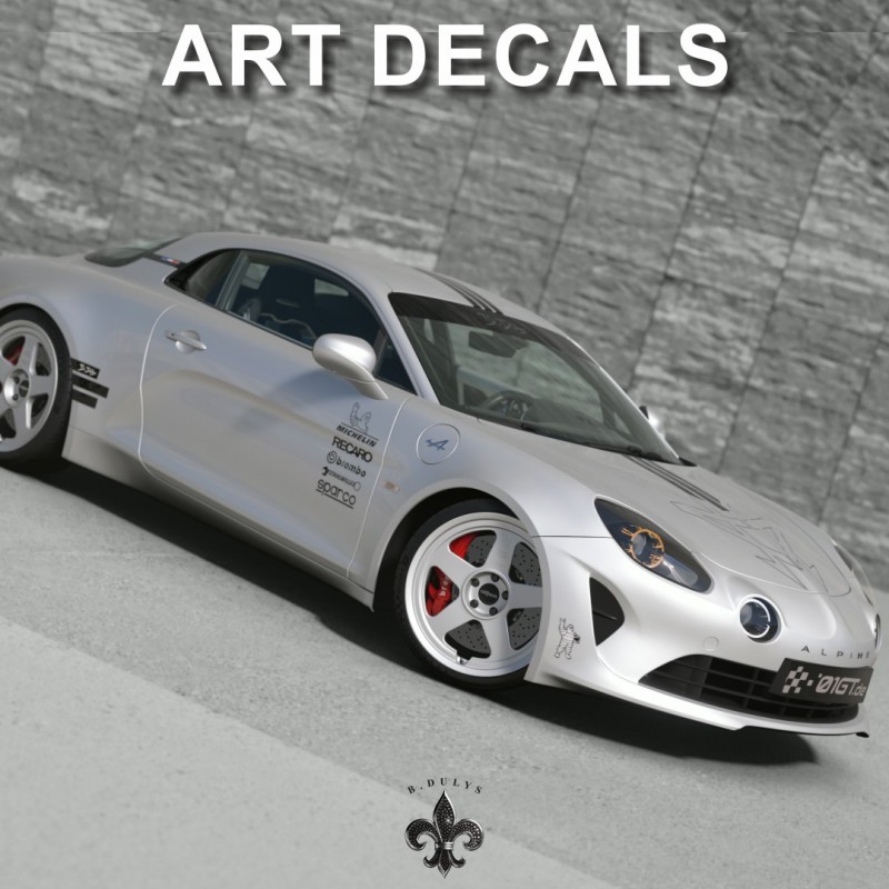 It refer to high-quality, custom-designed graphics or vinyl stickers applied to a Alpine's body to enhance its aesthetics, add a unique touch, or pay homage to historical racing liveries.